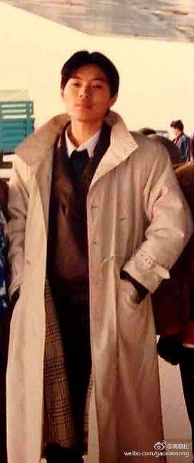 照片中的高晓松脸型轮廓清晰分明,身材消瘦,双手插进长长的驼色大衣兜,与现在相比,简直就是潇洒帅气。