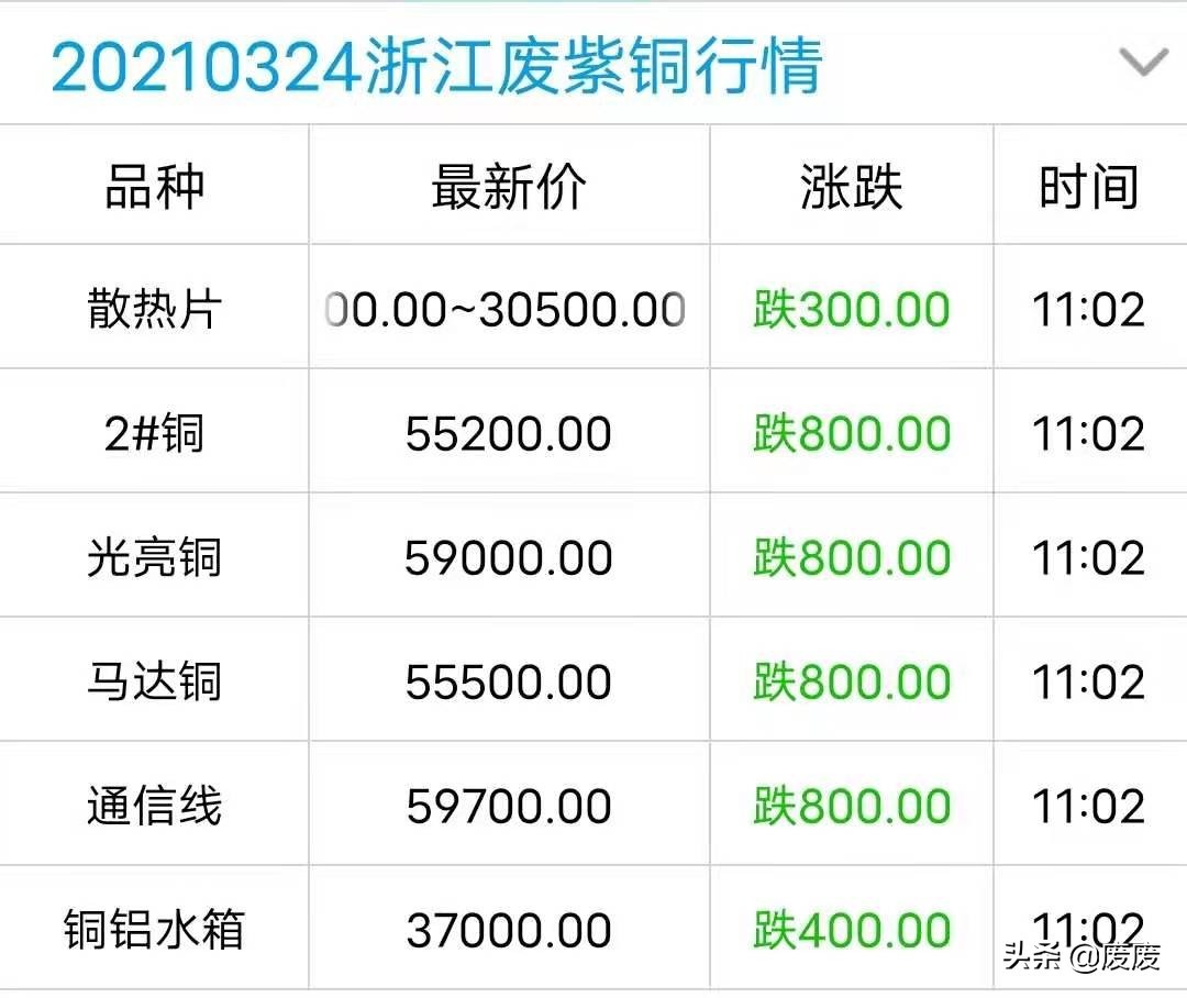 废废|废紫铜价格翻绿,最高跌800元\吨