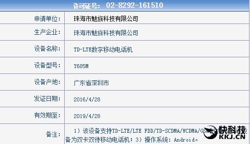 三个型号到底代表了什么手机呢?MX5、PRO5、的手机型号为M575、M576,如果不出意外Y685M应该就是MX6了,而L681M、L681Q预计是魅蓝Metal 2。