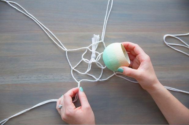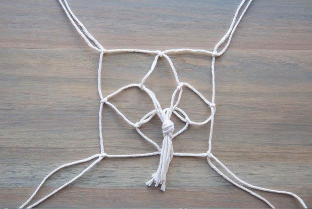 ▼Step2:利用绳子制作花盆的吊篮,按图片里的顺序仔细编织。