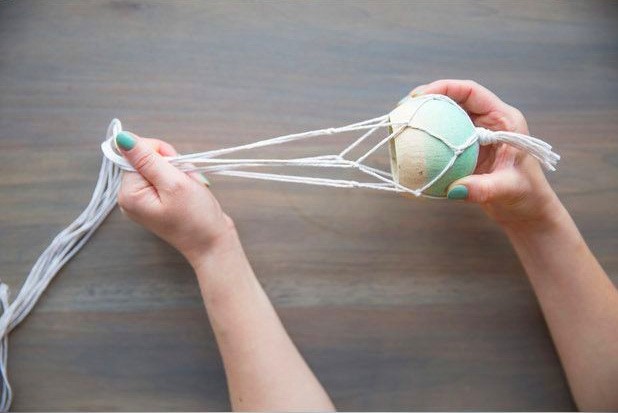 ▼Step3:将花盆小心地放入编织好的吊篮里。然后将它挂在家里任何需要植物美化的位置,好看的悬挂花盆植物就好拉。