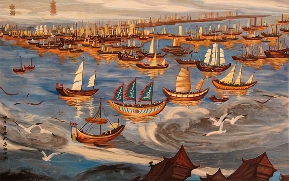 当时的中国在唐太宗和唐玄宗统治时期国力强盛,海上贸易繁荣发达,来自闽粤地区的商人云集东南沿海,搭乘帆船前往南洋各国进行贸易。