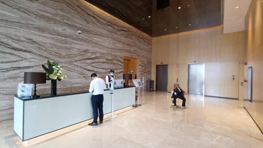 大堂登记后,小哥顺利带我进入电梯厅,沿途居然看不到任何中庭或花园。