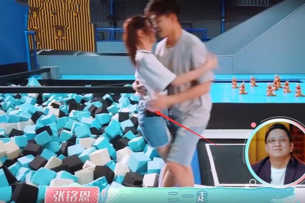 在这个慢放的过程当中,张铭恩的动作也是暴露了他的小心思,两个人在泡沫池中,迟迟都没有出来,这个时候节目组的字幕也是非常的调皮,用mua来救场,真的是热恋中的小情侣啊。