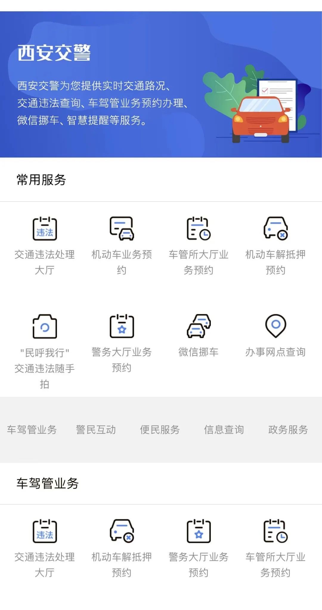 近期,西安交警微信服务号将对短信平台进行优化升级,期间将无法进行注册及业务预约服务,如您需要办理车驾管及违法处理业务,请您在交管12123APP上办理或直接前往业务受理网点现场办理。