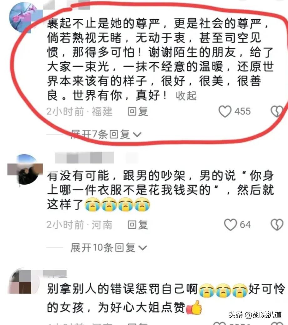 有人感慨:“这位姑娘或许是遇到了难以承受的困境,才会采取这种极端的方式来表达她的内心挣扎。” 另有观点则指出:“这种现象反映出社会在关爱和支持方面的不足,我们需要更多地关注周围人的心理状态和需求。”
