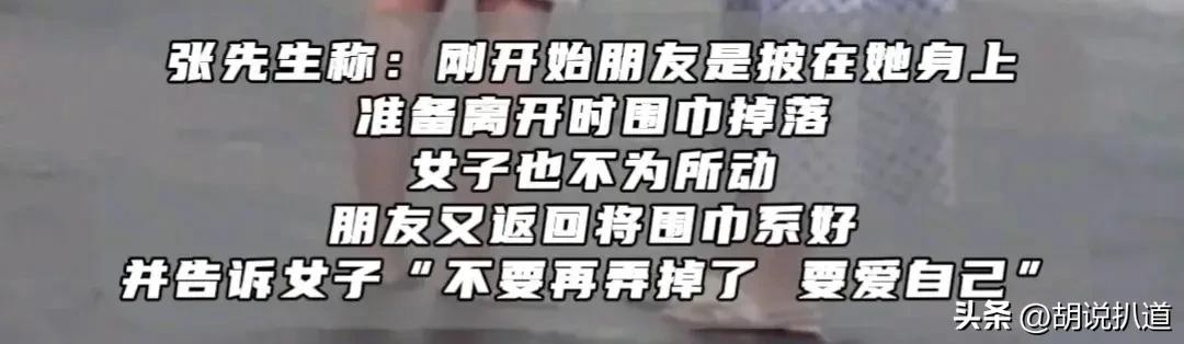 张先生回忆,起初他的朋友只是简单地将围巾搭在女子身上。当朋友准备离开时,围巾不慎滑落,但女子似乎并未在意。于是,张先生的朋友重新上前,细心地将围巾系紧,并温柔地提醒女子:“请好好照顾自己,不要再让围巾掉落。”