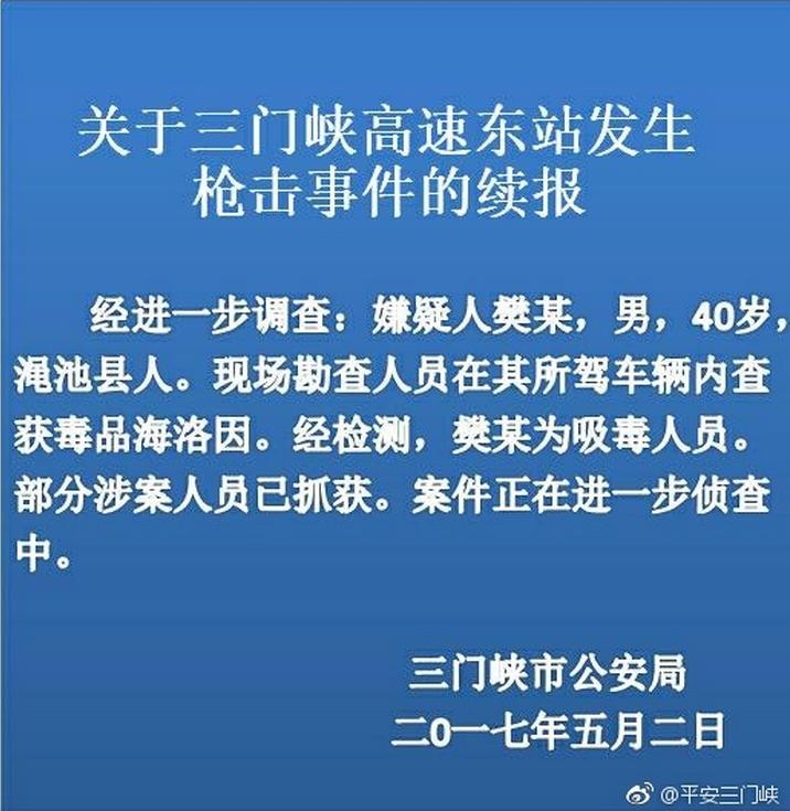 关于三门峡高速东站发生枪击事件的续报