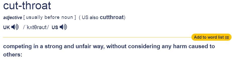 表示畸形的竞争,还可以说 cut-throat,以这种强大不公平的方式竞争,而不考虑其他人的感受。