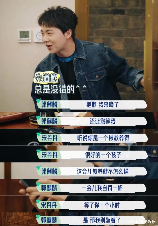 他在参加一次综艺活动的时候,因为自己到的比长辈宋丹丹晚一点,于是一进门就不断地道歉。