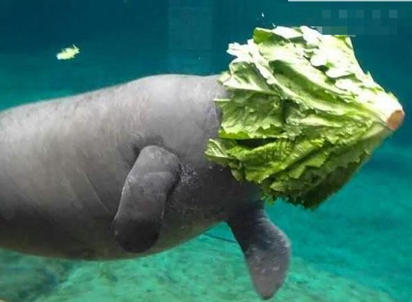 4、这只海牛在水底,找到了一个自娱自乐的方式。