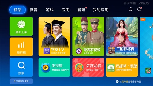 最后,最新的院线大片在家要看的话,可以安装当贝市场,下载VST全聚合、电视猫视频、蜜蜂视频即可。