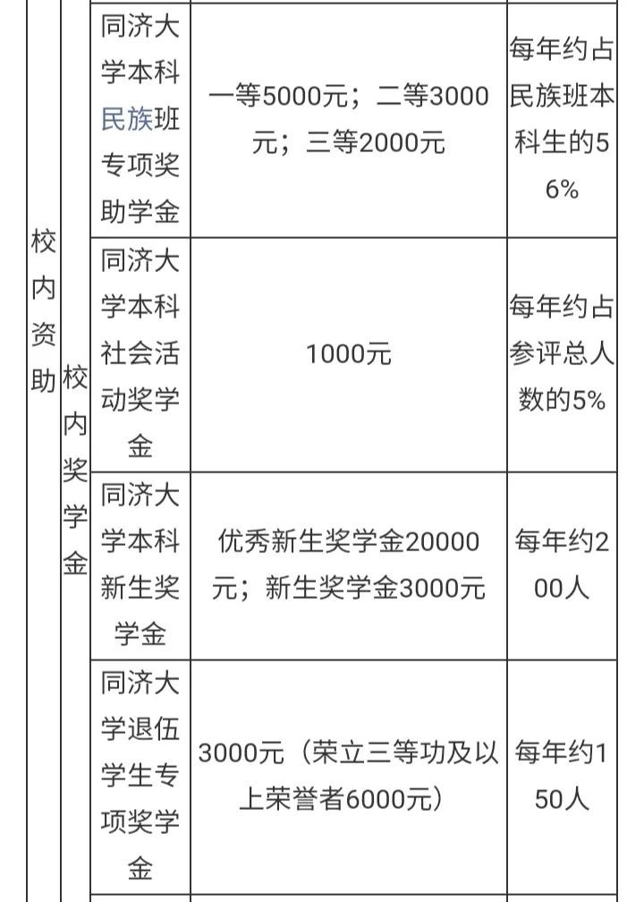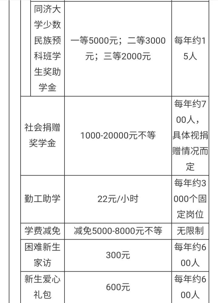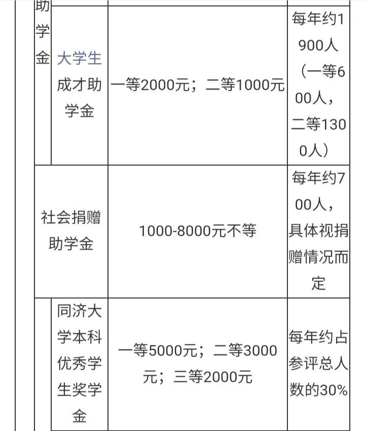 同济大学奖学金有哪些、一般多少钱是广大考生和家长朋友们十分关心的问题,以下是为大家整理的奖学金、助学金设置情况,包含国家资助、地方资助、校内资助等,供大家参考: