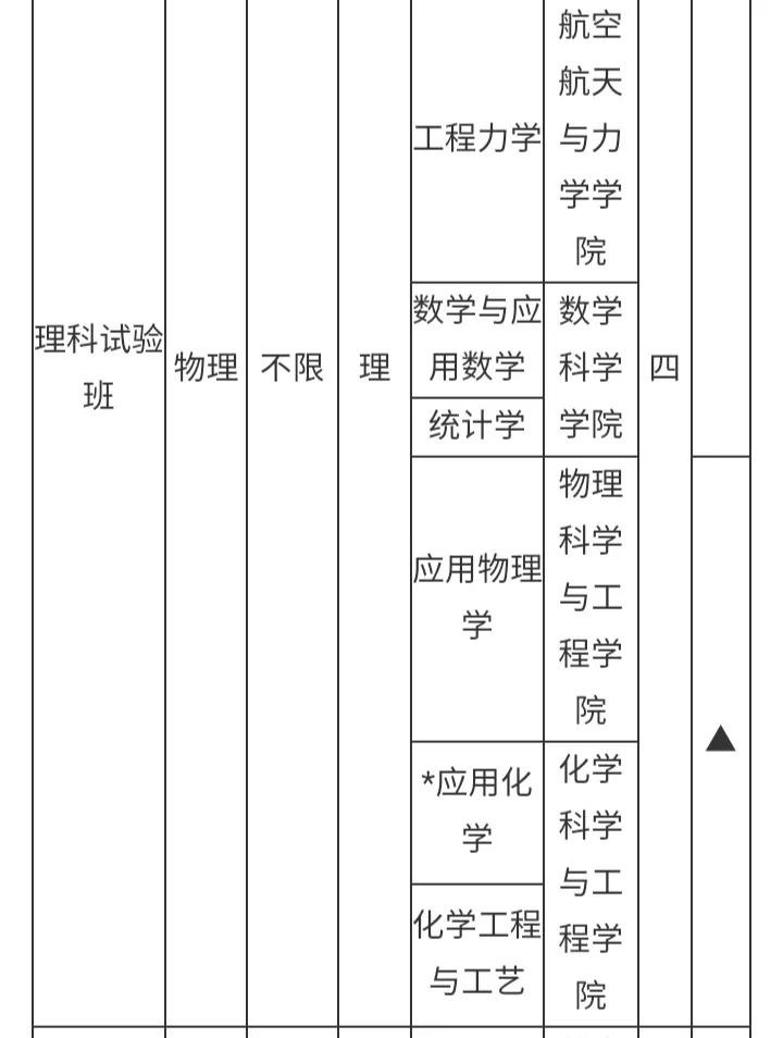 4. “理科实验班”在“【3+1+2】高考综合改革省份”不包括“应用化学”专业。