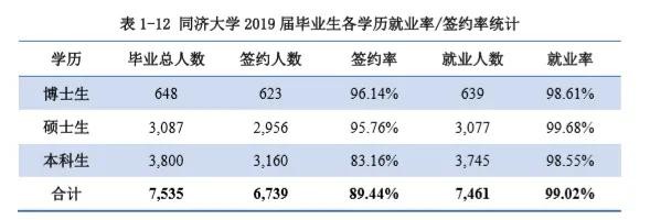 3、2019届同济大学就业率同济大学本科就业率为98.55%,硕士就业率为99.68%。同济大学就业率及就业前景怎么样(含2021届就业质量报告)
