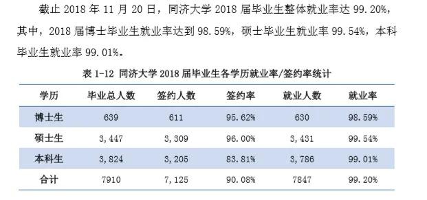 4、2018届同济大学就业率同济大学本科就业率为99.01%,硕士就业率为99.54%。同济大学就业率及就业前景怎么样(含2021届就业质量报告)