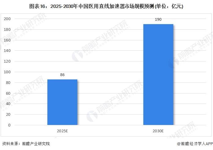 在数字化医疗技术的持续演进、国家政策的有力支持以及对肿瘤治疗精准度和效率提升的迫切需求推动下,医用直线加速器市场将迎来发展期。根据国家发布的《国家卫生健康委关于发布“十四五”大型医用设备配置规划的通知》中提到,常规放射治疗类设备共规划5333台,其中十四五共规划了1968台,放疗设备潜在市场规模庞大。据众成数科数据分析,2019年我国医用直线加速器市场规模达到42.41亿元,2023年达到68.07亿元,年复合增速12.56%。前瞻预计2025年中国医用直线加速器市场规模将达到86亿元,2030年将达到190亿元。
