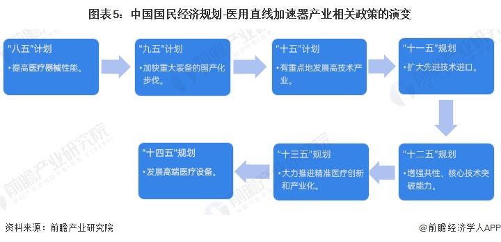医用直线加速器行业是我国医疗设备/医疗器械体系的重要分支,也是核技术应用领域的重要组成部分。根据我国国民经济“八五”计划至“十四五”规划,国家对医用直线加速器行业的支持政策经历了从“提高医疗器械性能”到“扩大先进技术进口”再到“发展高端医疗设备”的变化。