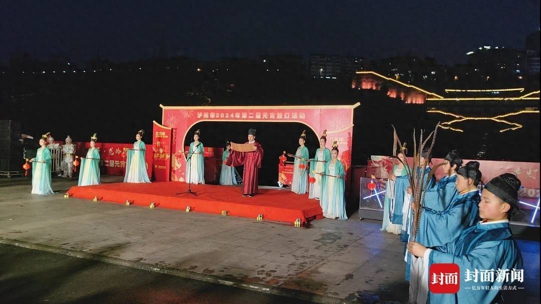 “水聚二江,祖祭炎黄。”2月24日,正月十五元宵节,晚上7点刚过,四川省泸州市2024年“千灯如昼·龙吟万家”第二届元宵放灯活动,在一场古典、古装的祭祀吟诵中拉开放灯仪式。
