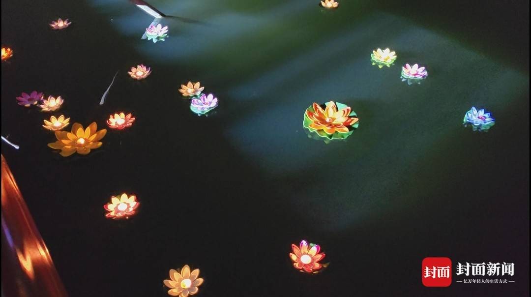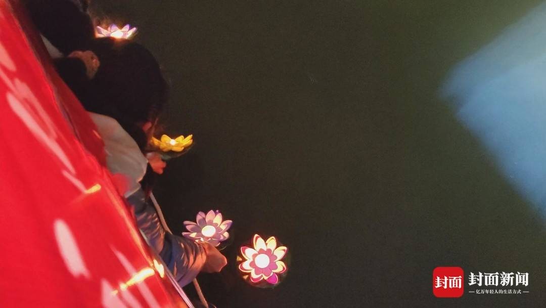 顺着江水漂流而下的河灯