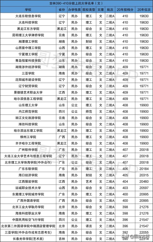 根据吉林省教育考试院公布的2020年招录数据可知,文科400分左右的二本大学比较多,但同样是民办性质的院校居多,仅有4所公立大学。