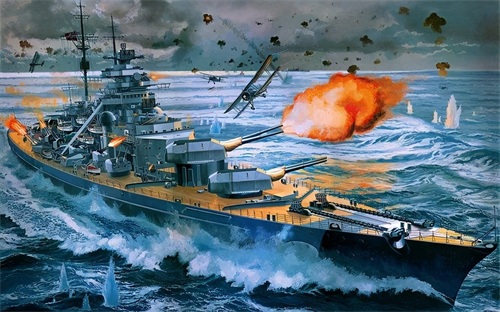 就这样,在整个大西洋之上,一场围堵“俾斯麦”号战列舰的追逐战展开了,这些军舰在“俾斯麦”号战列舰退回到法国海岸之前包围了它,几十倍的敌军,六百多颗巨型炮弹轮番轰炸,即使再坚固再厉害的战舰也抵挡不住这样的攻击啊,最终,“俾斯麦”号战列舰被英国皇家海军群彻底击毁,至此永远地沉入了海底。