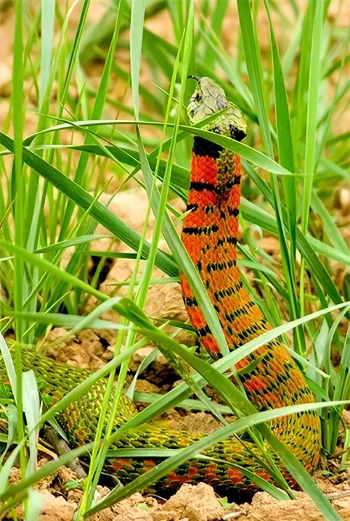“鸡冠蛇”在民间传说中是一种非常危险的蛇,它们不仅有强烈的攻击性,还会发出类似母鸡的“咯咯咯”叫声。古籍《录异记》中也有关于“鸡冠蛇”的记载,描述它的头部像雄鸡,身长约一尺,围绕数寸,被其咬伤的人必定会丧命。