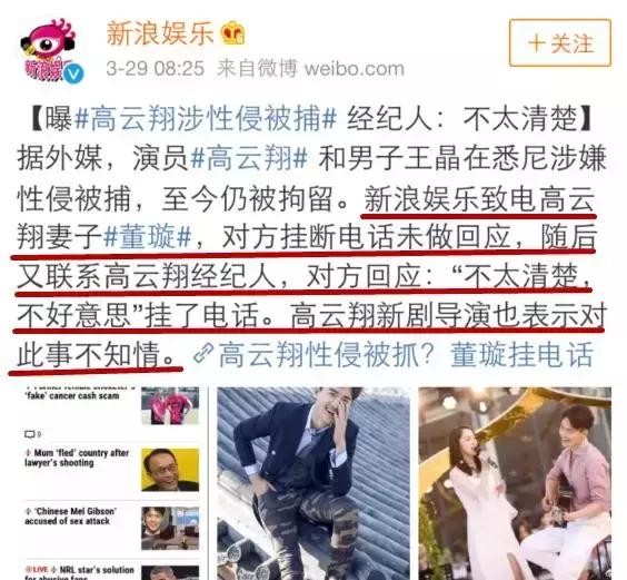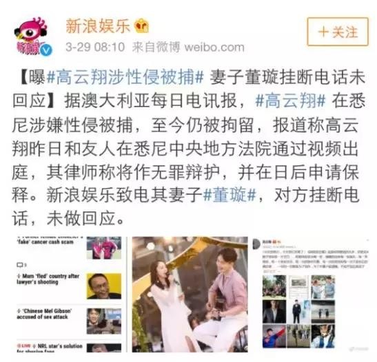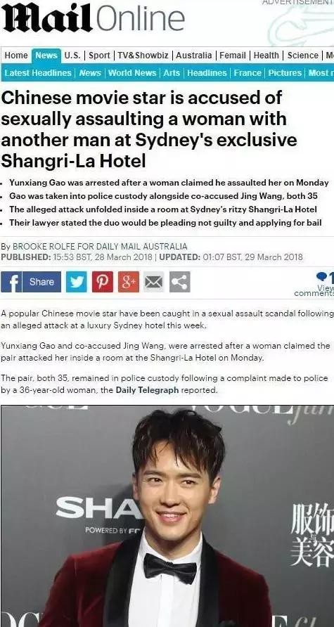 一大早就被高云翔涉嫌性侵的事情刷屏了,每日邮报报道高云翔涉嫌和另外一个名叫王晶的男子,在澳洲一家酒店对一个女子性侵。