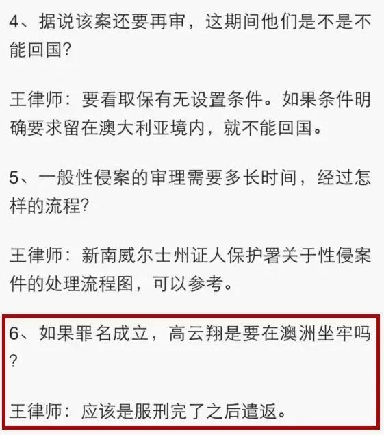 有记者咨询澳洲当地的律师,律师说一般在澳洲,如果罪名成立的话,普通性侵最高获刑14年,严重性侵则是20年,这要取决于具体情况。
