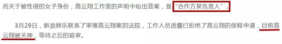 真的是一大早就好大一出戏啊,据说这个被侵犯的女性是合作方的某负责人,36岁左右,高云翔现在处于被关押状态。