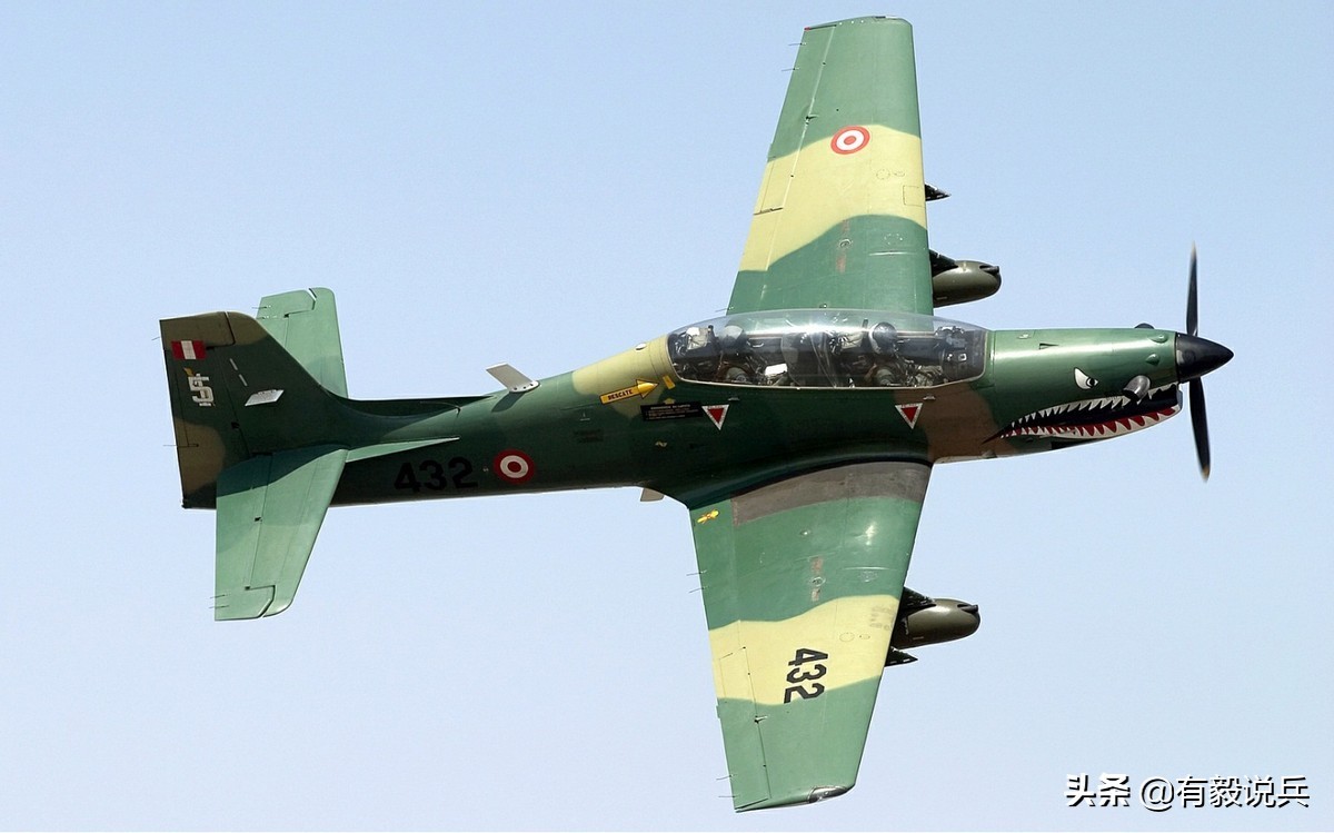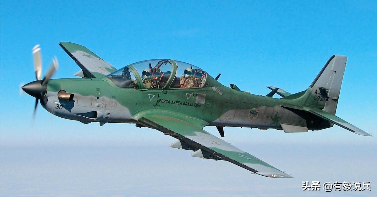 A-29/EMB-314“超级大嘴鸟”轻型攻击机的座舱视界较好,挂载副油箱和AIM-9L“响尾蛇”空空导弹,执行拦截中低空目标,与武装直升机争夺“树梢高度”制空权