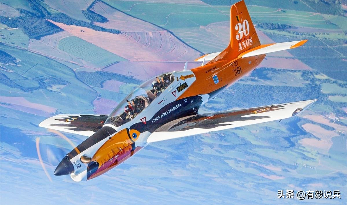 EMB-312“大嘴鸟”初级教练机采用1台加拿大PT6A-25C涡桨发动机(功率552kW)、串列双座气泡式座舱、平直下单翼、单垂尾和1对水平尾翼的总体设计,是一型成功的初级教练机,并发展出AT-27双座轻型攻击机,有13个国家的空军采购和装备了EMB-312“大嘴鸟”初级教练机,制造数量664架。