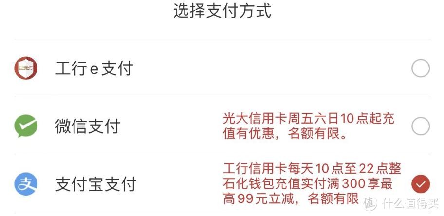 即日起至2月10日,每日10点通过“易捷加油”APP- 首页 - 石化钱包,充值满300元,选择支付宝支付 - 工行信用卡付款,享随机立减9.9-99元优惠,日限4300名,共限1次。