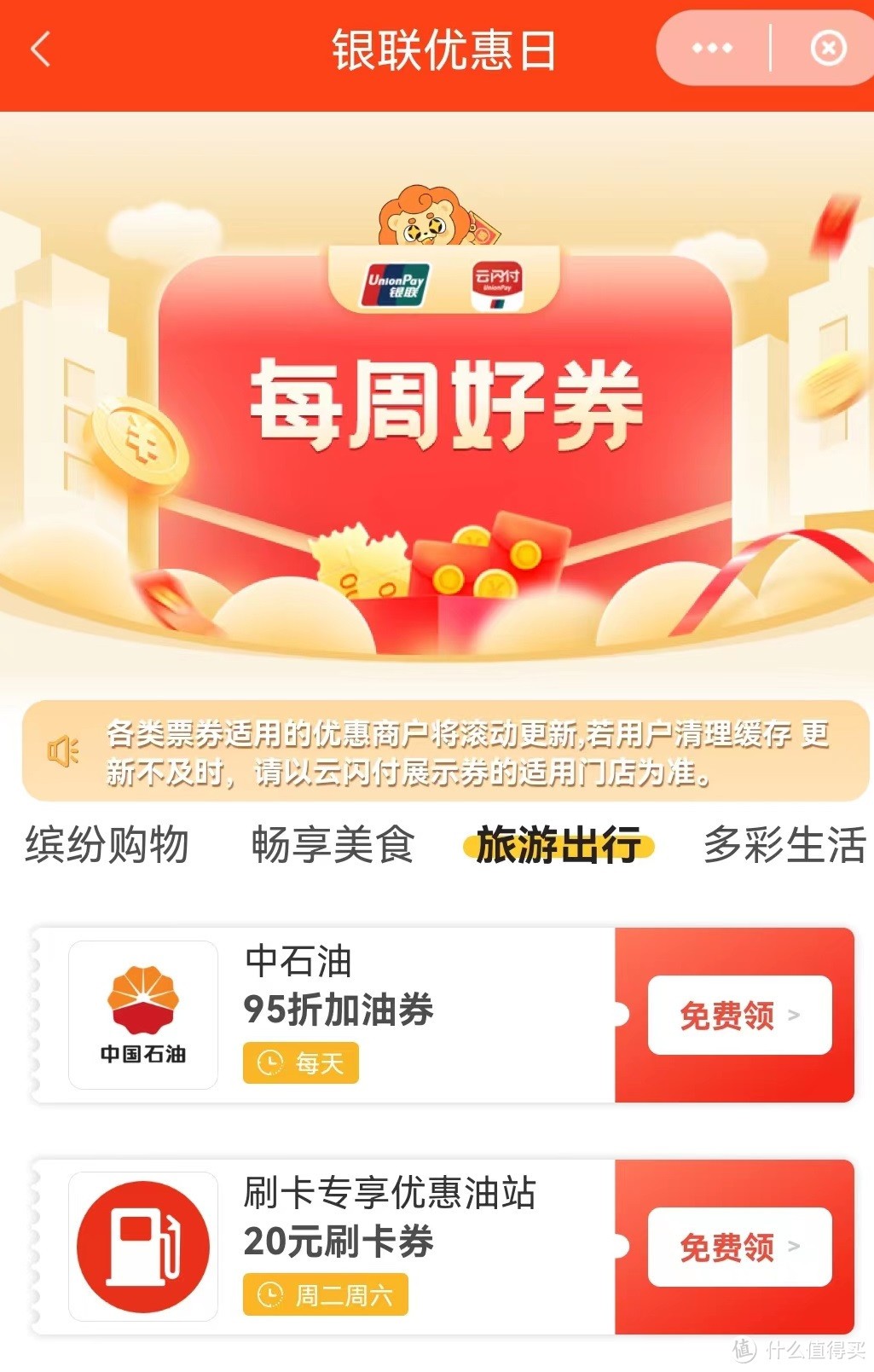 1、云闪付直接搜银联优惠日--每日好券--旅游出行