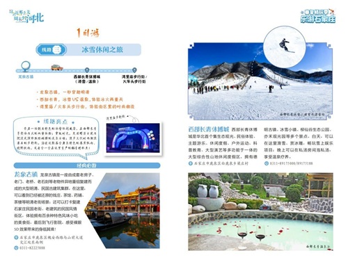 1日游线路三:冰雪休闲之旅。 石家庄市文化广电和旅游局制图
