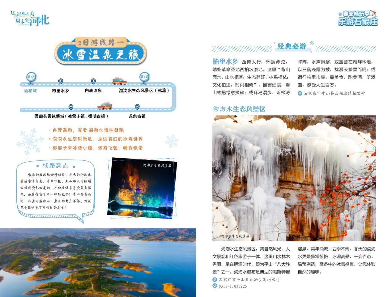 2日游线路一:冰雪温泉之旅。石家庄市文化广电和旅游局制图