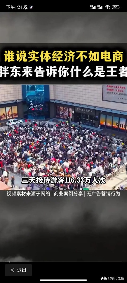 三天接待游客116.3万次。是的!胖东来顾客不叫顾客叫“游客”。不能用爆满形容,因为门口外也是爆满,胖东来直接变成4A级景区。