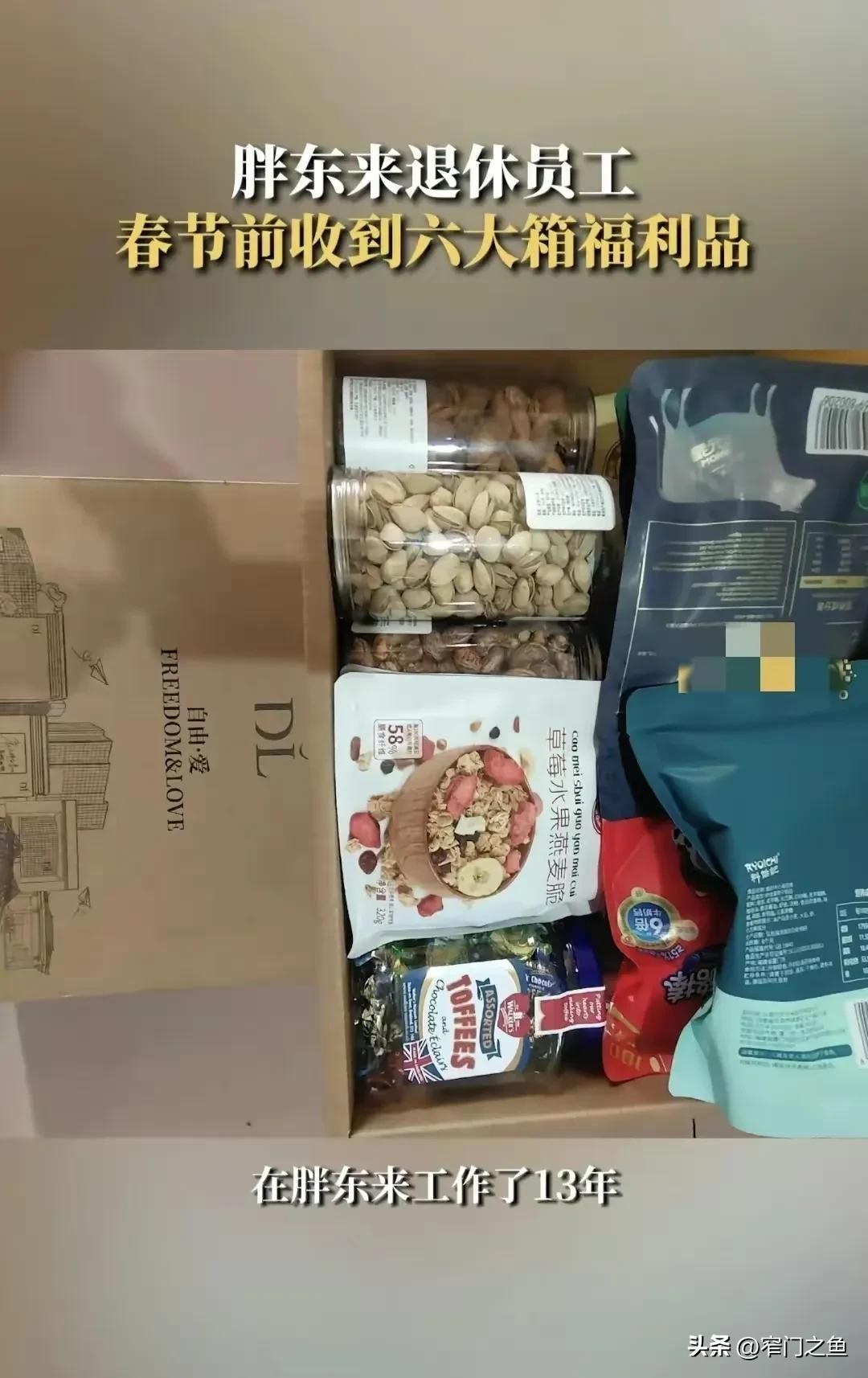 六箱福利啥都有,公司发福利不是很正常吗?不正常!这是胖东来给退休员工发的,关爱退休员工生活是它的传统。