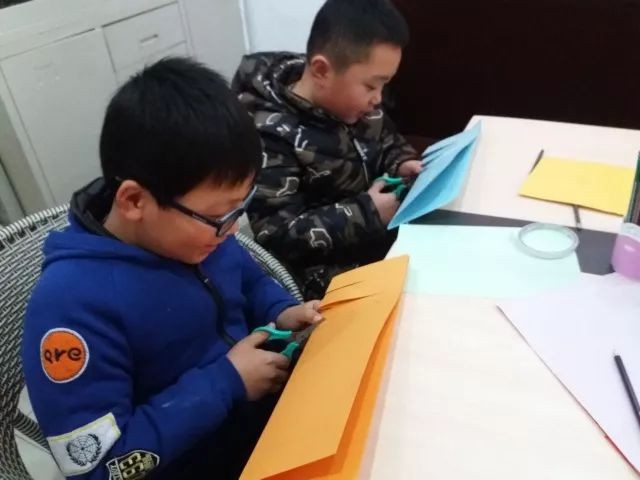 小朋友们跟着志愿者认真的学,一张张卡纸在小朋友们灵巧的小手下不一会儿,就做成了一个个小灯笼。