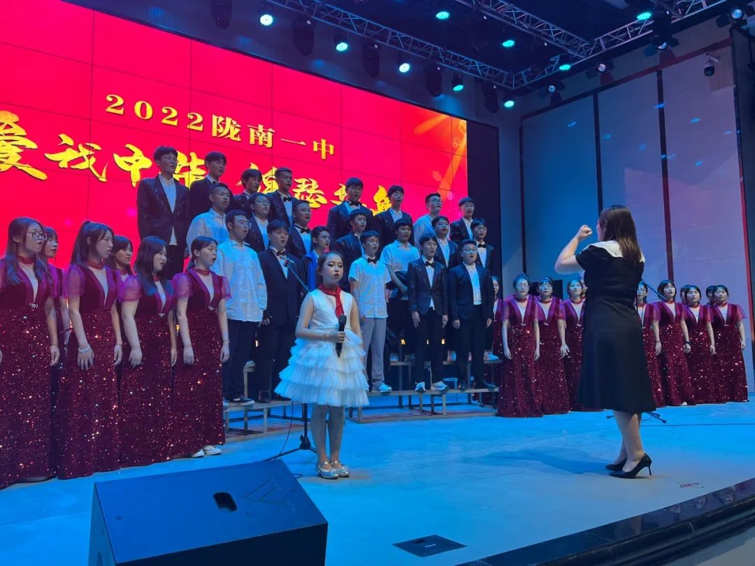 为了推动学校美育工作,丰富校园文化生活,提高师生校园艺术素养,陶冶情操,陇南一中音乐组于2022年6月1日在多功能报告厅,成功举办首届“爱我中华、锦瑟华年”专场音乐文化节活动,为学校师生带来集艺术性、专业性于一体的“艺术大餐”。本次演出是由音乐组全体老师参与指导、排练,音乐、舞蹈专业学生共同为大家呈献的精彩绝伦的表演。节目类型丰富多样,包括合唱、舞蹈、器乐、情景音乐剧等内容,给同学们的课余生活添姿添彩。两场晚会现场座无虚席,我校校长许邦兴、副校长周志平、副校长王长青、教务处主任崔长庆、教研室主任谢子毅等校领导莅临晚会现场。部分教职工和家属、高一级及高三直播班同学、部分学生家长观看了晚会。