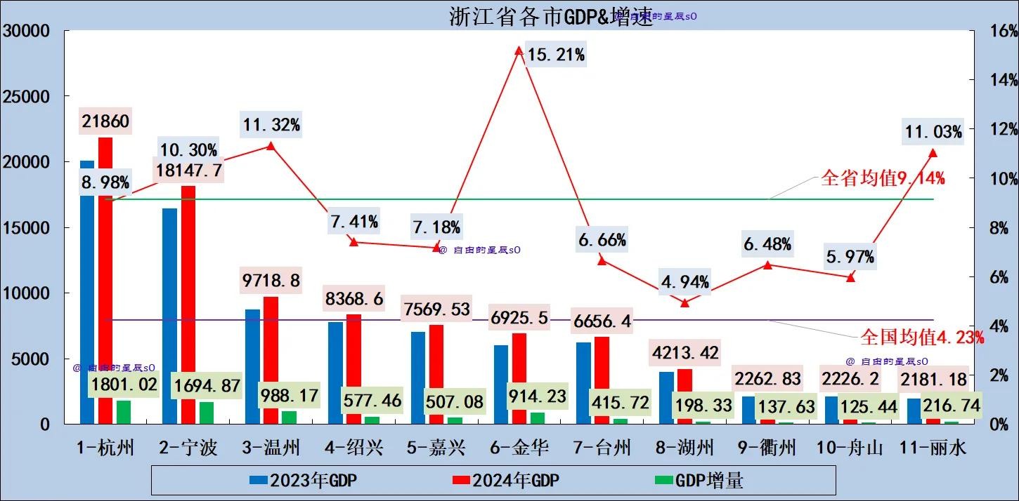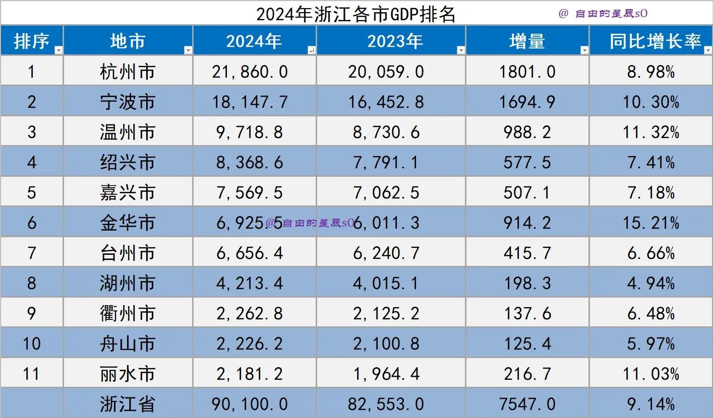 杭州大涨宁波暴增,金华逆袭台州!浙江各市2024年GDP排行出炉