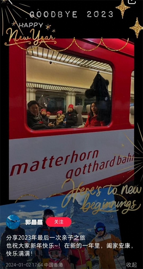 而这次全家人之所以在2023年最后一次旅行选择去瑞士也不过是因为郭晶晶要前往瑞士开会,这样既方便也可以带着全家人一起游玩。