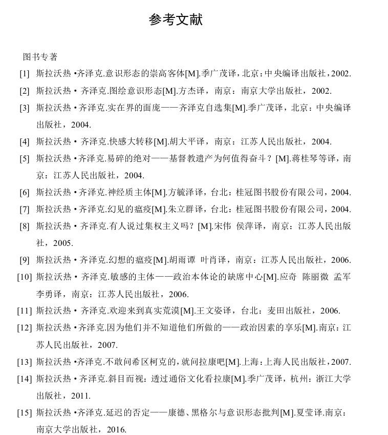 尽管国内学术界在2004年以后对于齐泽克的研究才大量出现,至今为止,将近二十年的时间,国内关于齐泽克的文献资料也已经达到了汗牛充栋的程度。