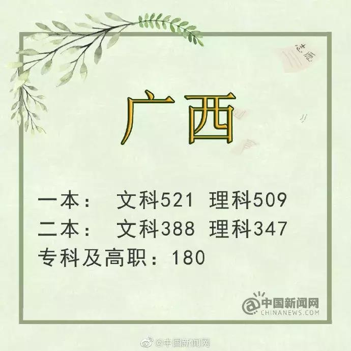 广西:一本理工509分 文史521分