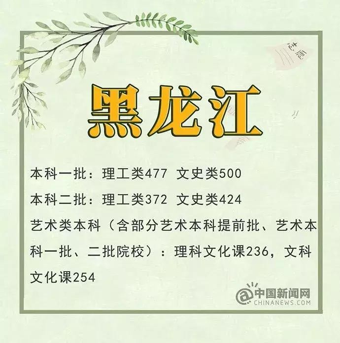 黑龙江:文科一本500分 理科一本477分