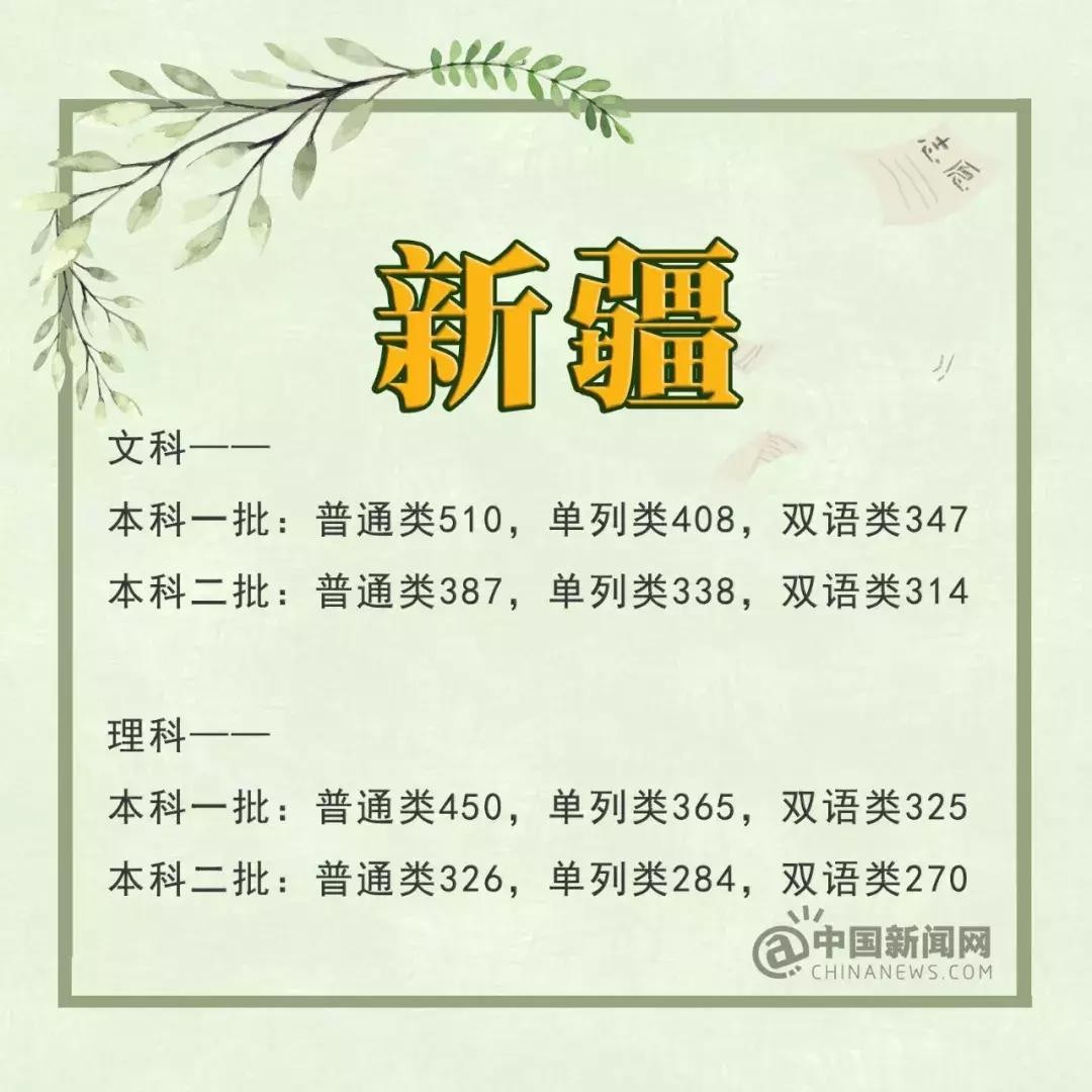 新疆:一本文科510分 理科450分