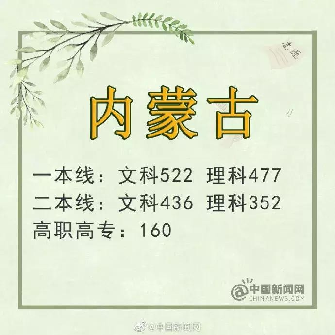 内蒙古:文科一本线522分 理科477分