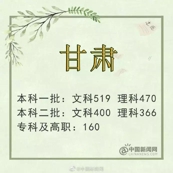甘肃:第一批文史519分 理工470分