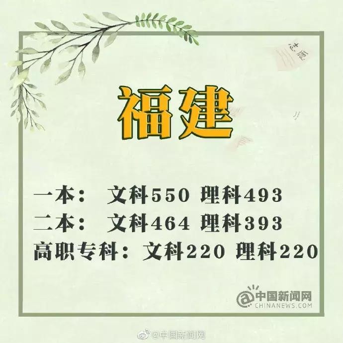 福建:文科一本线550分 理科一本线493分