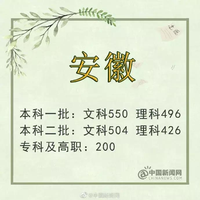 安徽:一批理工类496分 文史类550分
